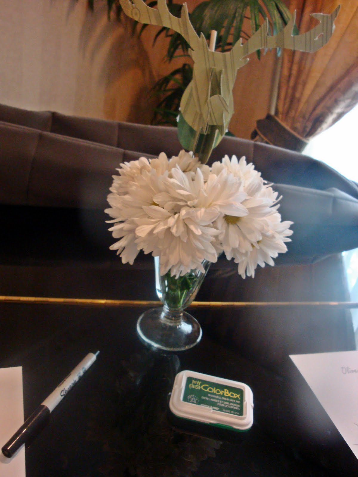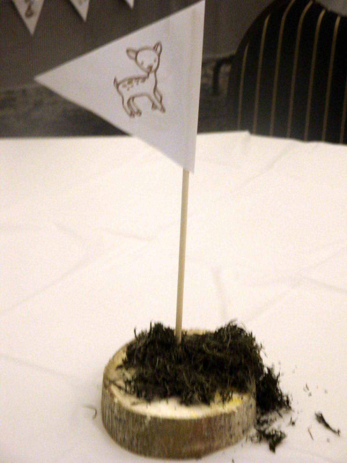 We had a signing table with this tree silhouette to put a finger print on for leaves and sign your name.  i made this deer head from this tutorial/template.  Moss came from the dollar store.  I used this fox banner and just added a fawn in photoshop.  I'm disappointed in the pics, I forgot my SLR camera - I feel like it looked much cuter than these show, but isn't that how it works?